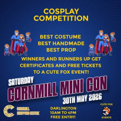 Taking place at Cornmill Shopping Centre in Darlington on Saturday 30th May 2026. This event will have traders and cosplayers! It is a FREE entry event.